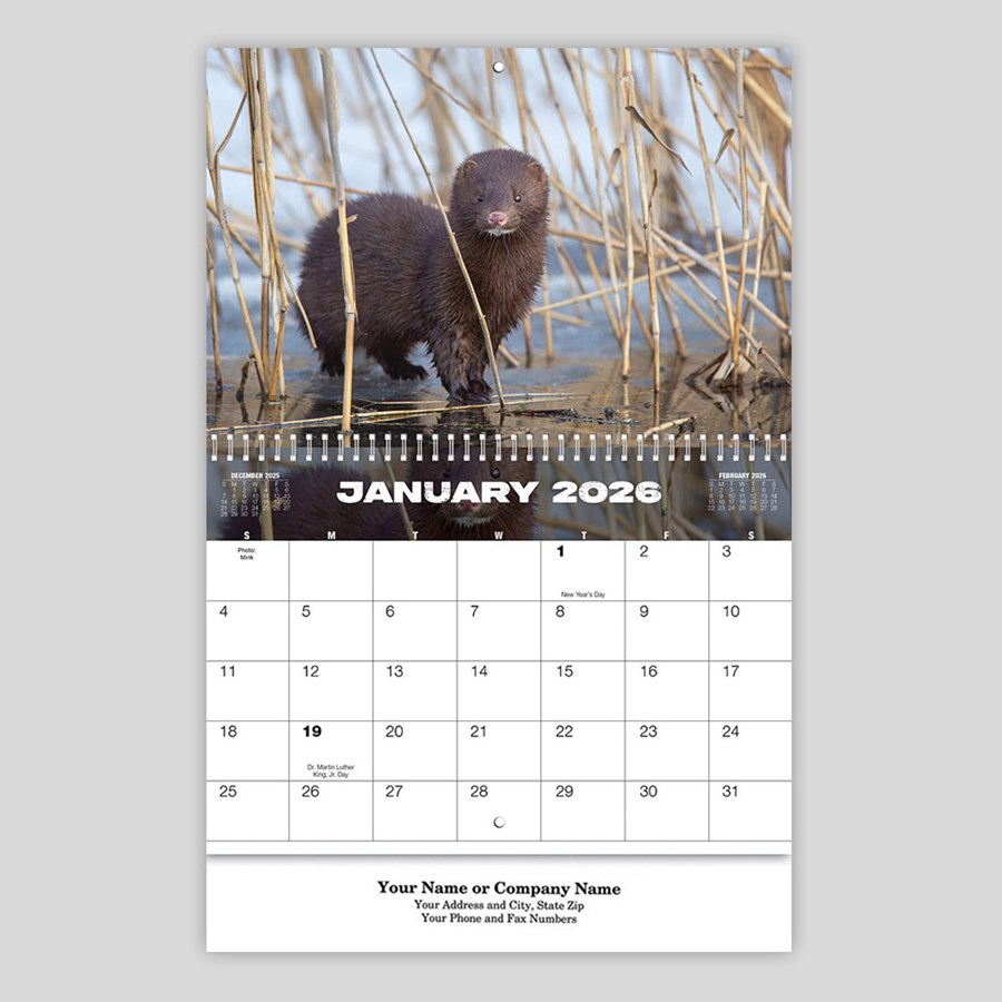 Remember to appreciate the beauty of America's wildlife with this wall calendar. Every month displays a new picture of animals in the wild. Celebrate the new year by giving this calendar to all your employees and customers.