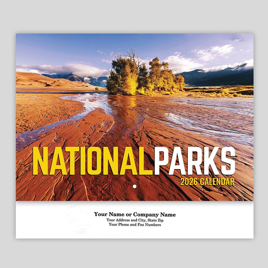 Parks across the United States are featured on the pages of this stapled appointment calendar. Promotional wall calendars feature large boxes for writing notes and appointments. They are an easy way to promote your business all year long!