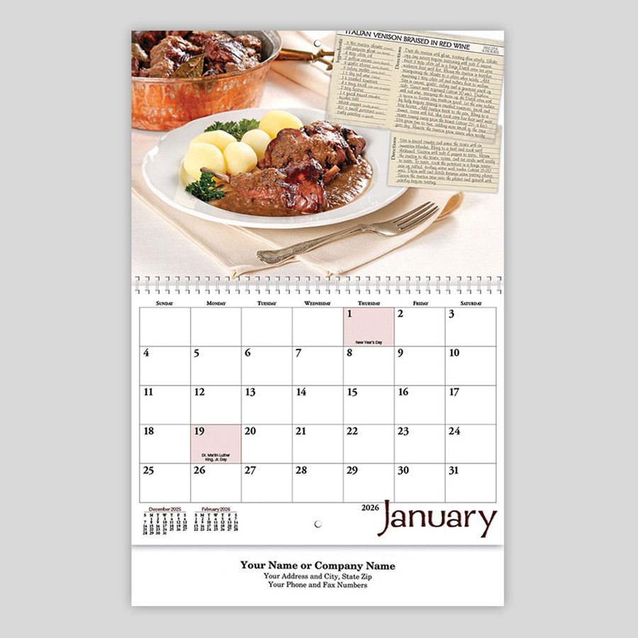 Cooks and foodies alike will love this calendar. Each month you'll see an incredible meal to inspire your own tasty treats. With its spiral format, this calendar is easy to use and enjoy. Give it to your customers and employees if you'd like.