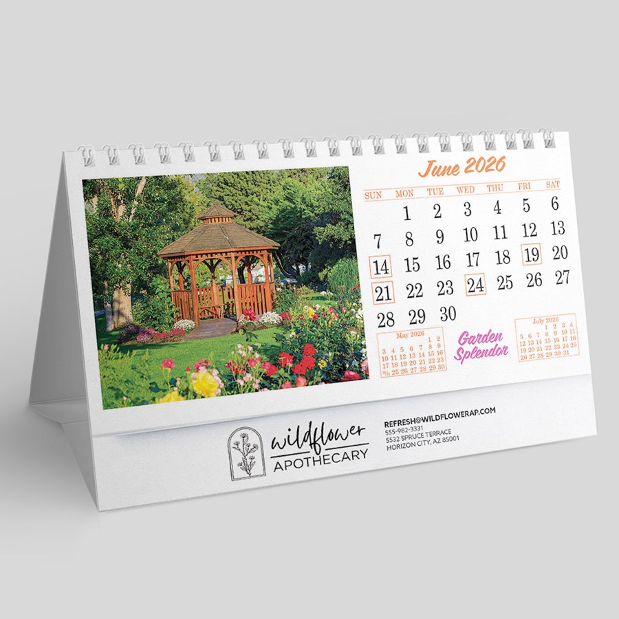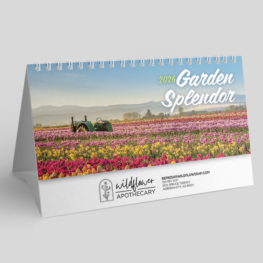 There's nothing quite like looking at bright and beautiful flowers each day. This desk calendar features wonderful monthly images of flowers. You can use these calendars to inspire employees and customers. It makes a great end of the year gift.