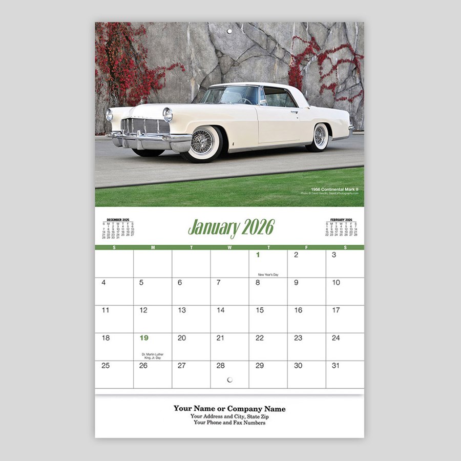 Classic cars are so fun to look at. This calendar is decorated with images of cars making it a perfect gift from businesses in the auto industry. You can customize the calendar with your business name and other information that would be helpful for associates or customers.