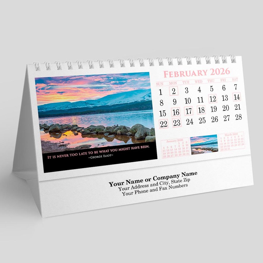 Daily inspiration is just an order away. This inspirational calendar shows beautiful scenes with a motivational message each month. By having it on your desk, you'll be inspired every day. Get everyone in the office inspired by giving this desk calendar away for a end of the year gift.