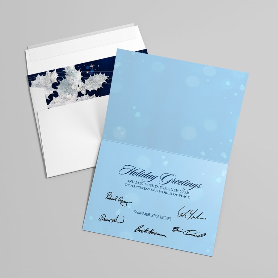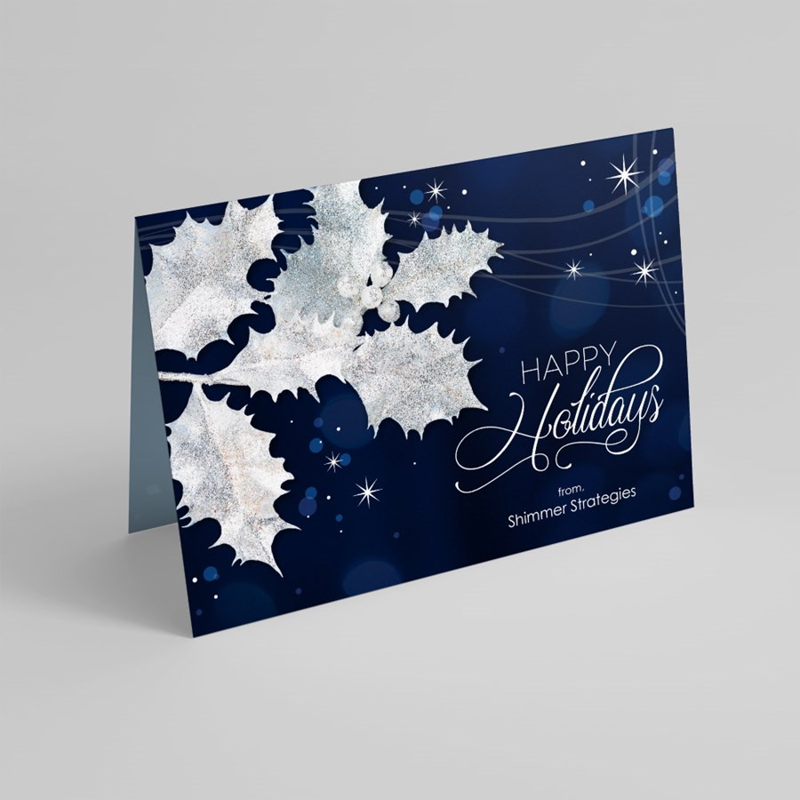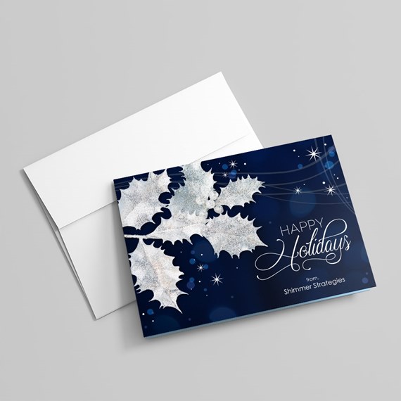 Celebrate the season with a greeting that catches the light and attention. The Holly Holiday Card features a tasteful holiday motif paired with a subtle shimmering finish that adds a refined, festive sheen—perfect for conveying warm wishes with a touch of sparkle. Its polished appearance makes every message feel more thoughtful and memorable, whether you’re sending to family, friends, or business contacts.