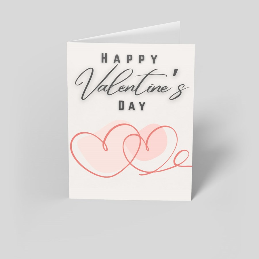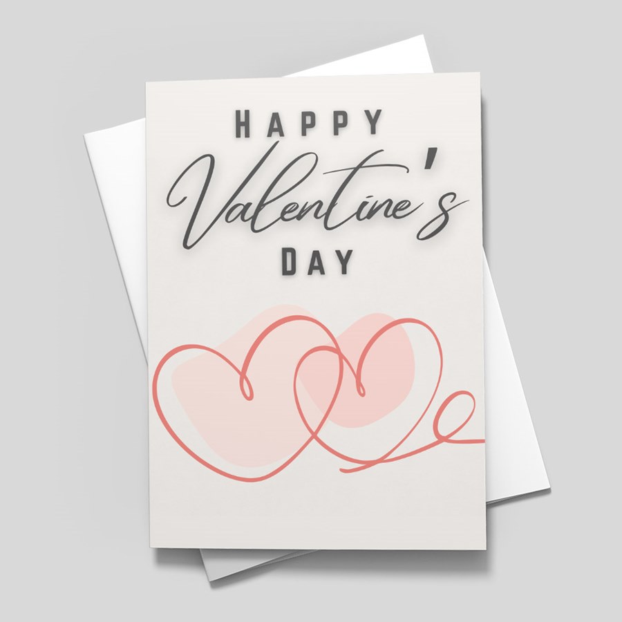A refined, contemporary card that pairs bold and cursive typography to present 'HAPPY VALENTINE'S DAY' above two intertwined hearts in soft pink and coral on a light background. The balanced mix of script and bold text, together with flowing lines and a gentle palette, creates an elegant, approachable look that suits both personal sentiment and professional outreach. Several images show tasteful variations — a pink textured panel contrasted with a white face, or a clean white exterior with minimal graphics. Ideal for client appreciation, colleague notes, executive gift enclosures or intimate personal messages, this design delivers polished presentation without fuss. One pictured interior is printed with 'Warmest Thoughts and Best Wishes for a Happy Valentine's Day' in coral with black signatures; other versions show a simple, uncluttered interior ready for a handwritten note. The understated imagery and colorway make it versatile for corporate and private correspondence alike.
