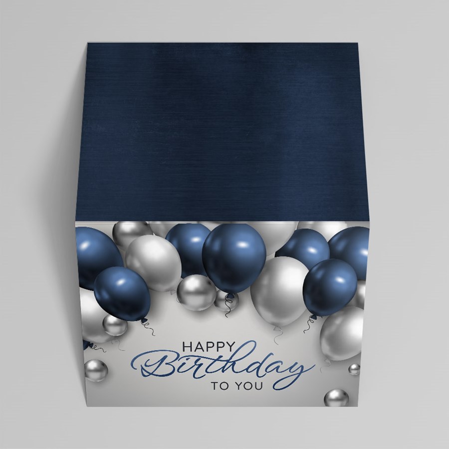 Bright, modern, and ready to delight, this festive birthday card features a clustered spray of balloons in shades of blue, silver, and gray floating against a light background for a fresh, celebratory look. The message “Happy Birthday to You” pairs flowing script with bold typography, creating striking contrast and a design that feels both playful and polished.